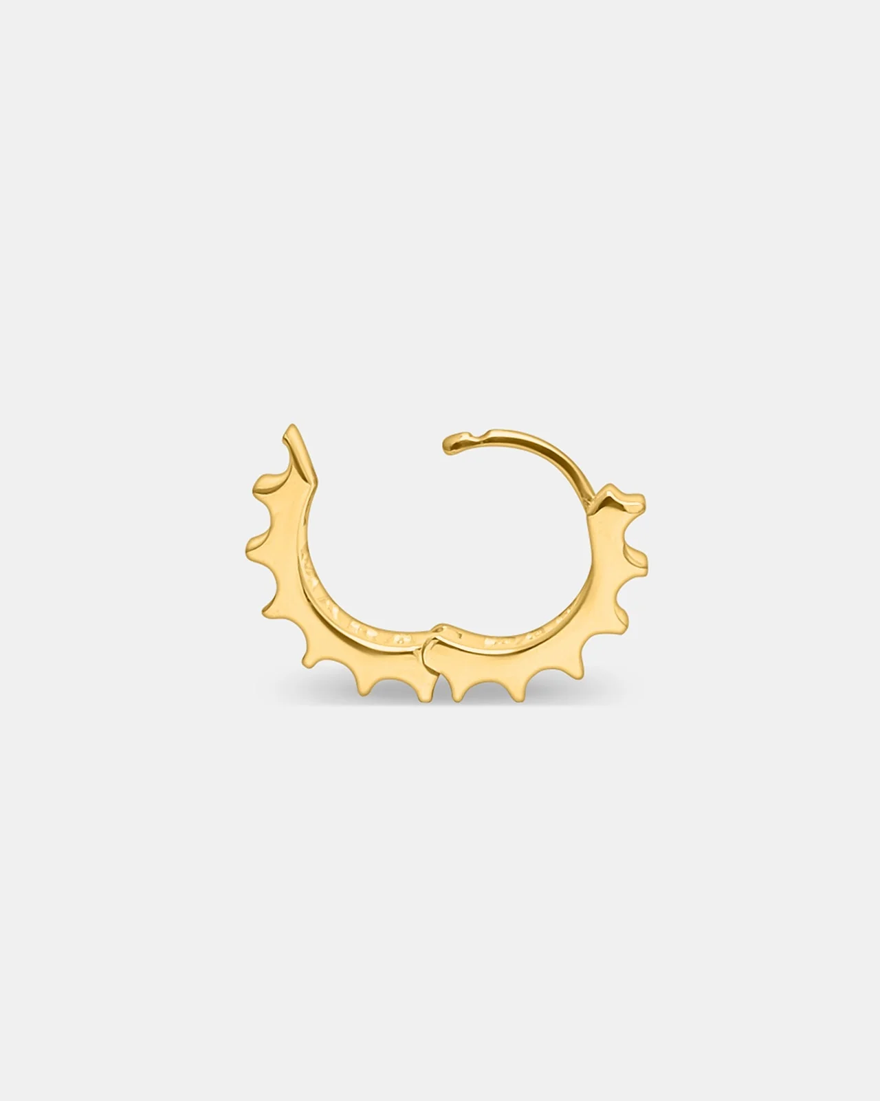 Inspired by the majestic Temple of Artemis in the ancient city of Sardis, these small hinged hoop earrings pay tribute to the temple's architectural grandeur, reflecting the symmetrical patterns that adorn its columns. The delicately etched grooves on the hoops evoke the timeless beauty of classical design, offering a modern interpretation of ancient elegance. This piece connects us to our rich cultural heritage, inviting reflection on the enduring influence of architecture in shaping our perception of space and time. Wearing these earrings is a celebration of the artistry and craftsmanship of the past, while embracing the lasting legacy of antiquity in a contemporary context.