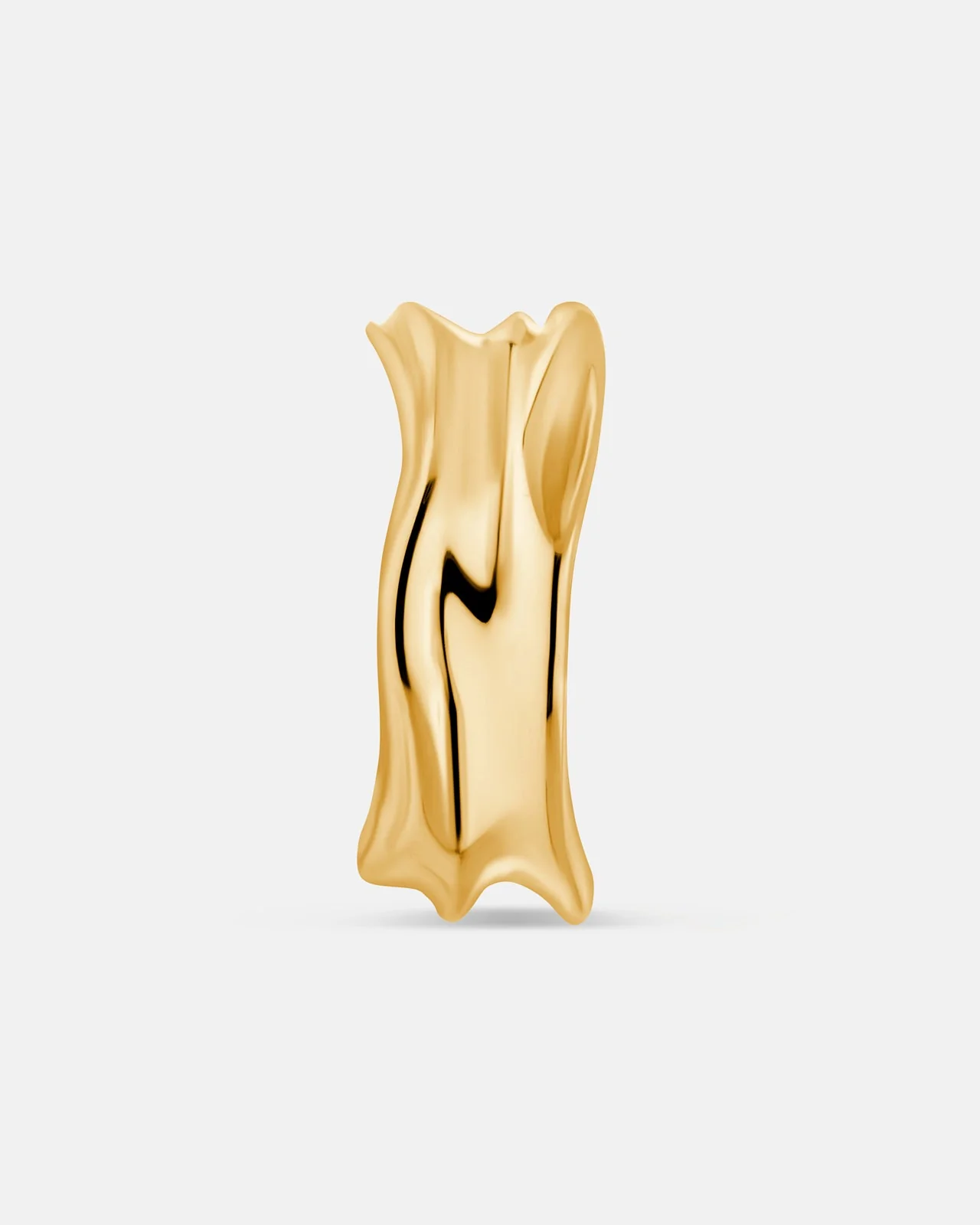 The texture of an abstract artwork combines with the brilliance of a surface reminiscent of unexplored horizons to transform into a sculpture for the hand. It enhances the finger and also looks great when stacked with its wide version or by daring to mix silver and vermeil.