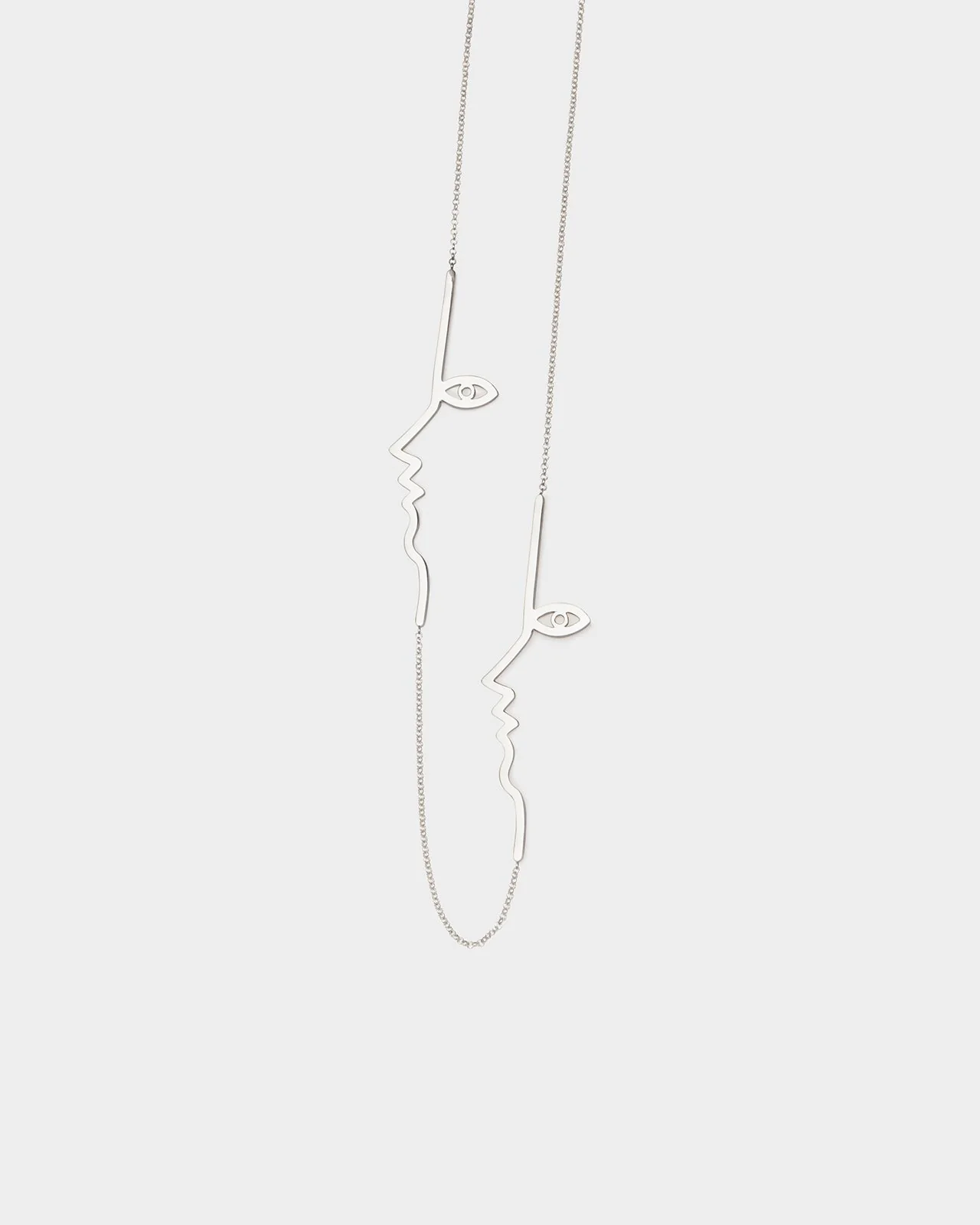 The Dina necklace pays homage to the iconic line drawings and personas of artists Henri Matisse and Pablo Picasso. It captures their playfulness, joy, and inventive spirit through simple yet expressive face shapes. Offering versatility and encouraging personal expression, this modern string necklace can be worn boldly at the front, or as a backdrop necklace delicately tracing the spine, to highlight the wearer's back and shoulders. By providing multiple ways to wear it, the necklace embodies the inventive nature of the masters, proving that art can always arise in unexpected places.