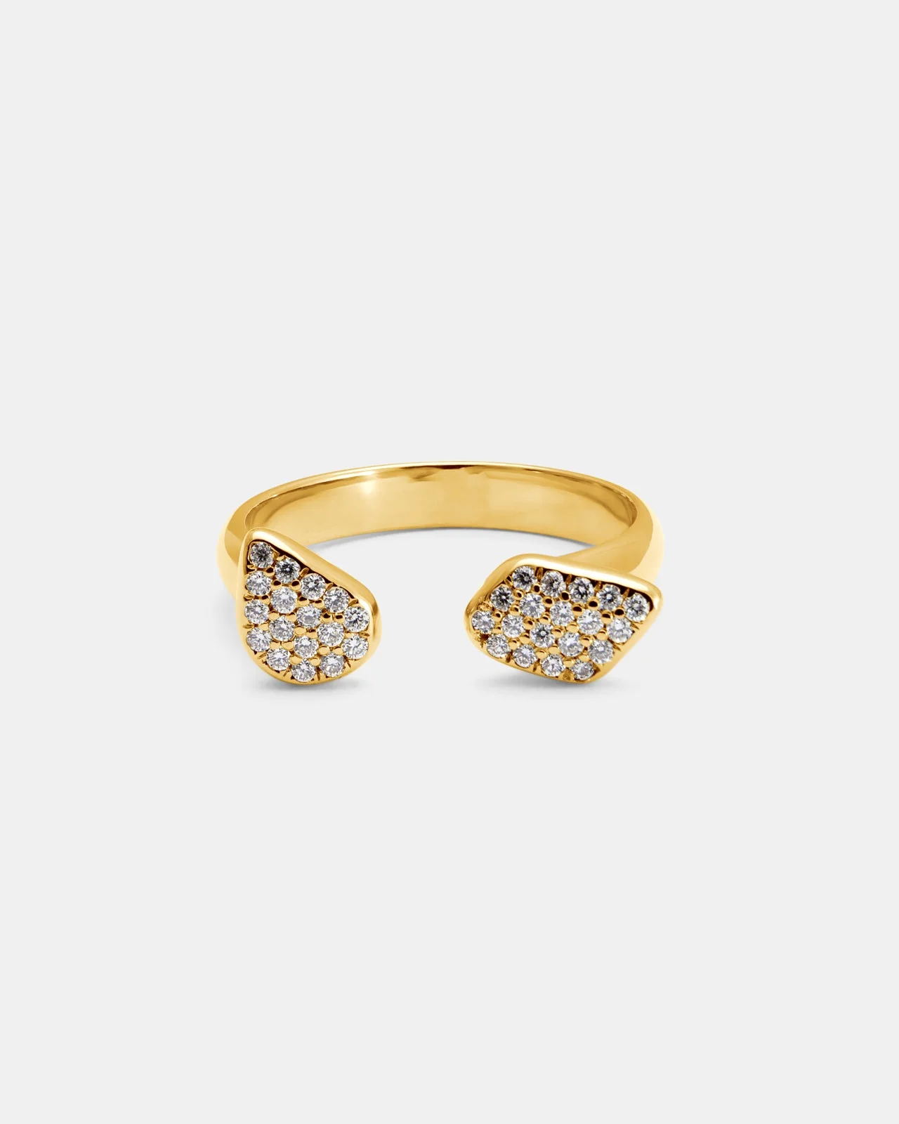 Designed for everyday elegance. With its discreet yet captivating open band, Gold Dream Ring with Pavé Diamonds symbolizes a connection between your conscious and subconscious realms. A symbol of artistry and emotional connection, Dream is inspired by organic and biomorphic forms solidified by small diamonds set on each side. Stepping away from traditional heirlooms, Gold Dream Ring brings modern design to the forefront, inviting you to embrace self-expression through elegant and alternative creativity. More than jewelry, it is an experience that celebrates the perfect combination of art, emotion, and human connection. This ring is made to order.