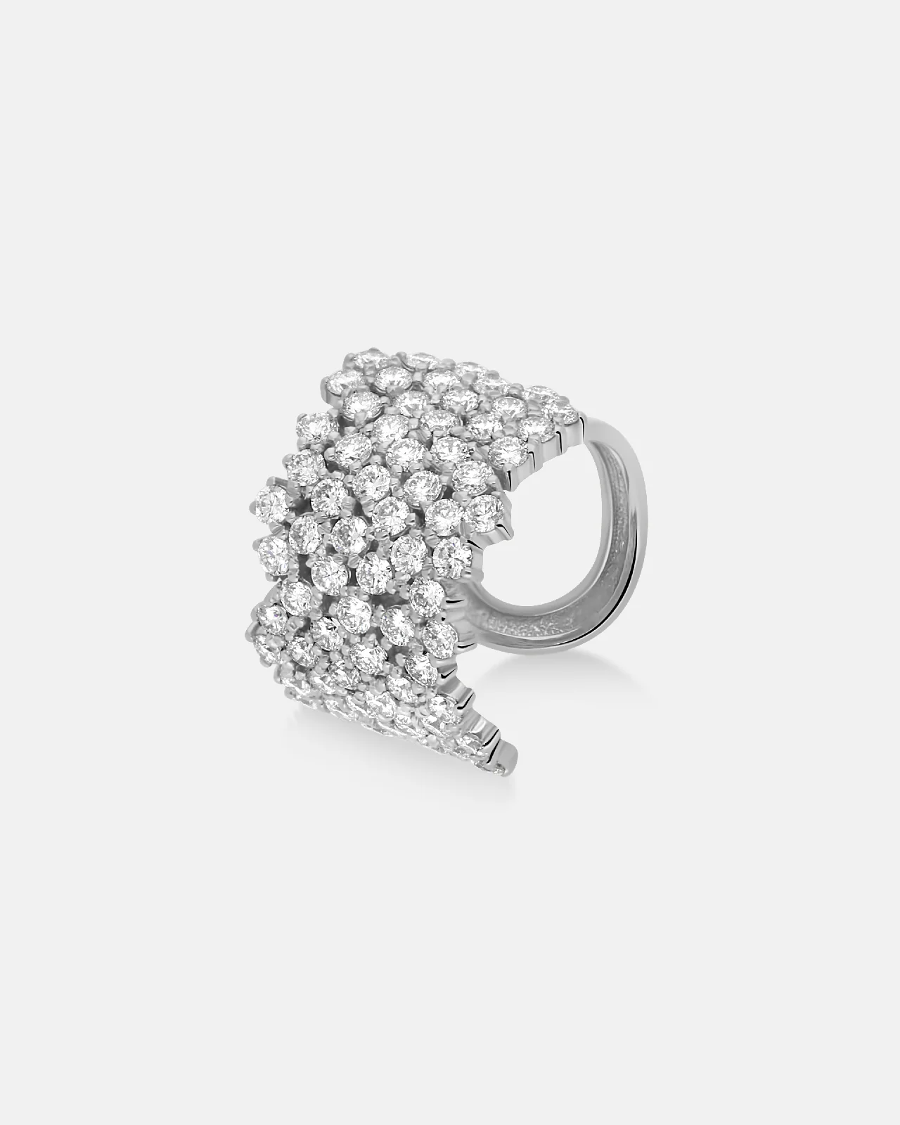 The Ethereal Glow ear cuff reimagines adornment as an art of suspension, where diamonds appear to float effortlessly, tracing the body's natural contours with a luminous, almost gravitational defiance.