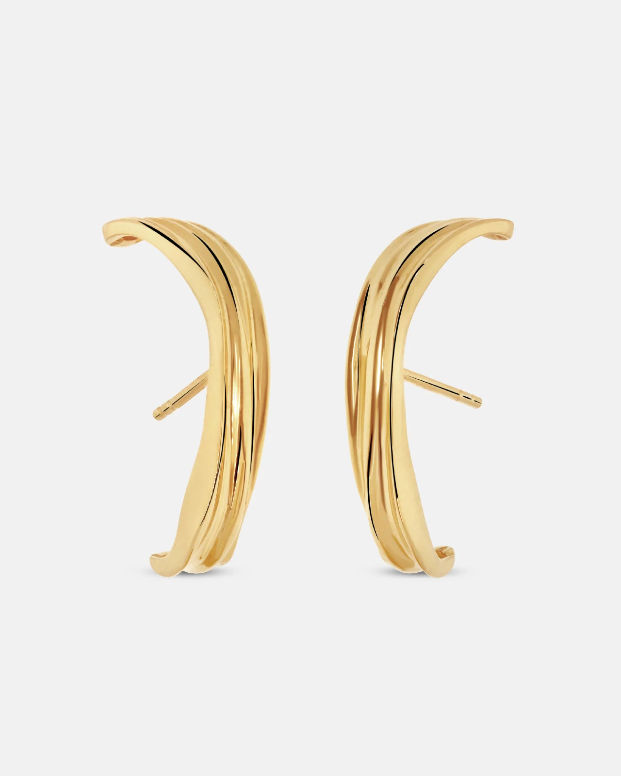 The Flow Bold Earring magnifies the essence of movement with a more sculptural presence. Its fuller curve traces the ear with intention, a fluid form that feels both instinctive and assertive.