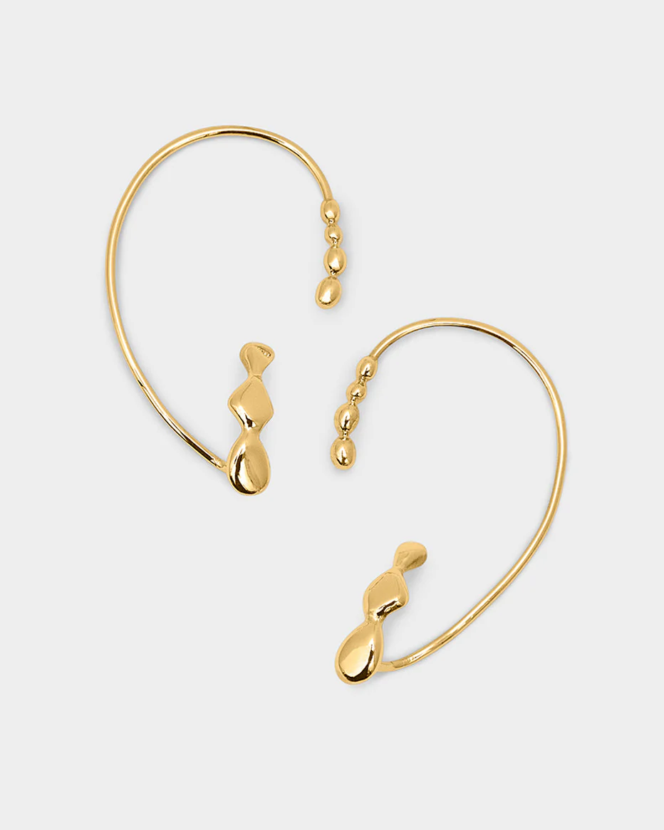 Our iconic ear cuff that delicately hooks onto your ear and carefreely embraces the helix’s natural curve. Made from vermeil the drops are a gentle reminder that sculptural art does not always go big and bold but shines in the fine and subtle details. Available as a single piece or a pair.