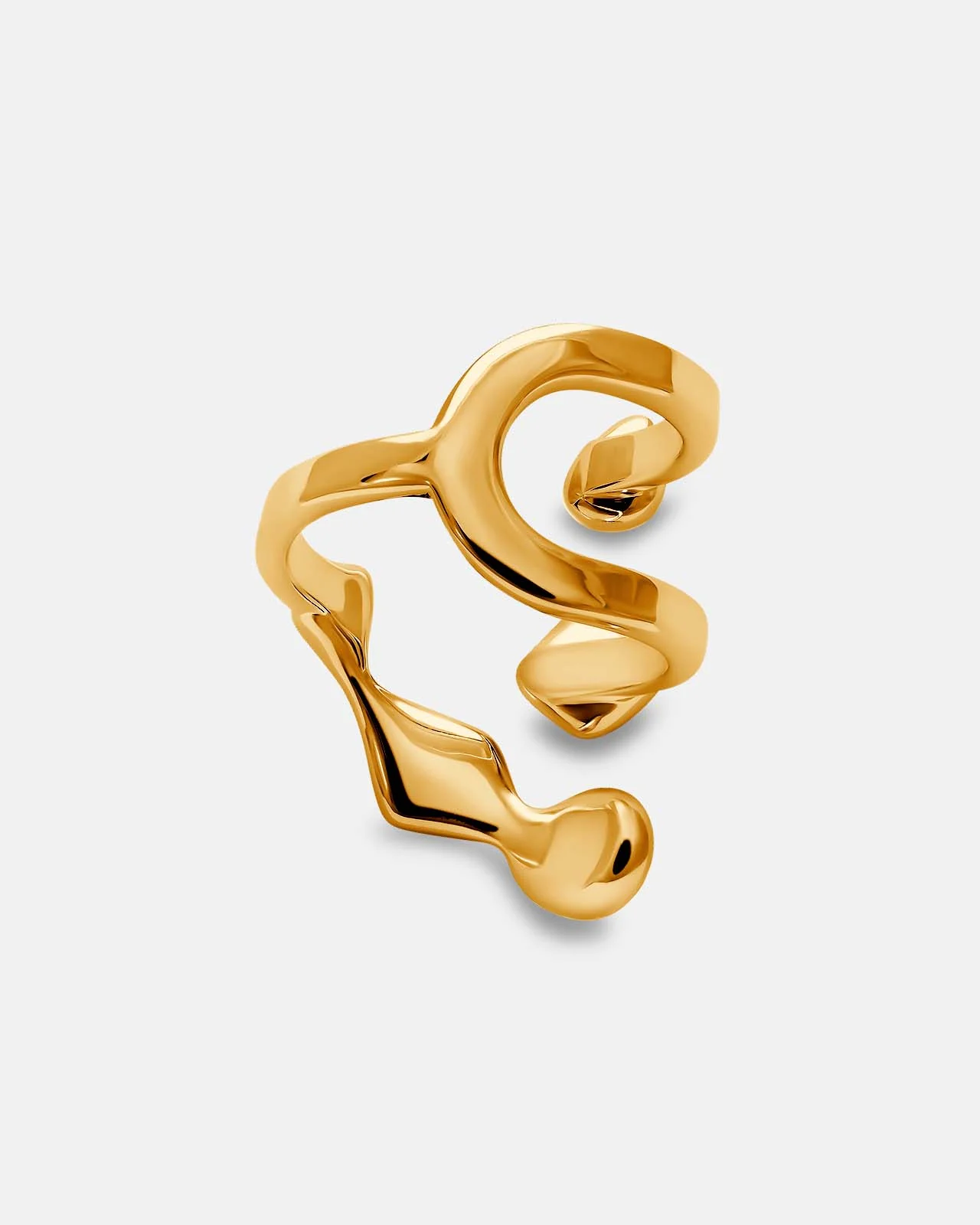Flux ring in gold vermeil, sculpted with fluid, organic lines inspired by movement and modern sculpture. A signature Mara Paris design, its polished surface reflects light softly, creating a sense of flow across the hand. Designed to sit close to the finger, Flux feels like a second skin, confident, tactile, and effortless. Worn alone or paired with other rings, it brings strength to everyday gestures. Non-adjustable to preserve its sculptural form. Please select your correct size.