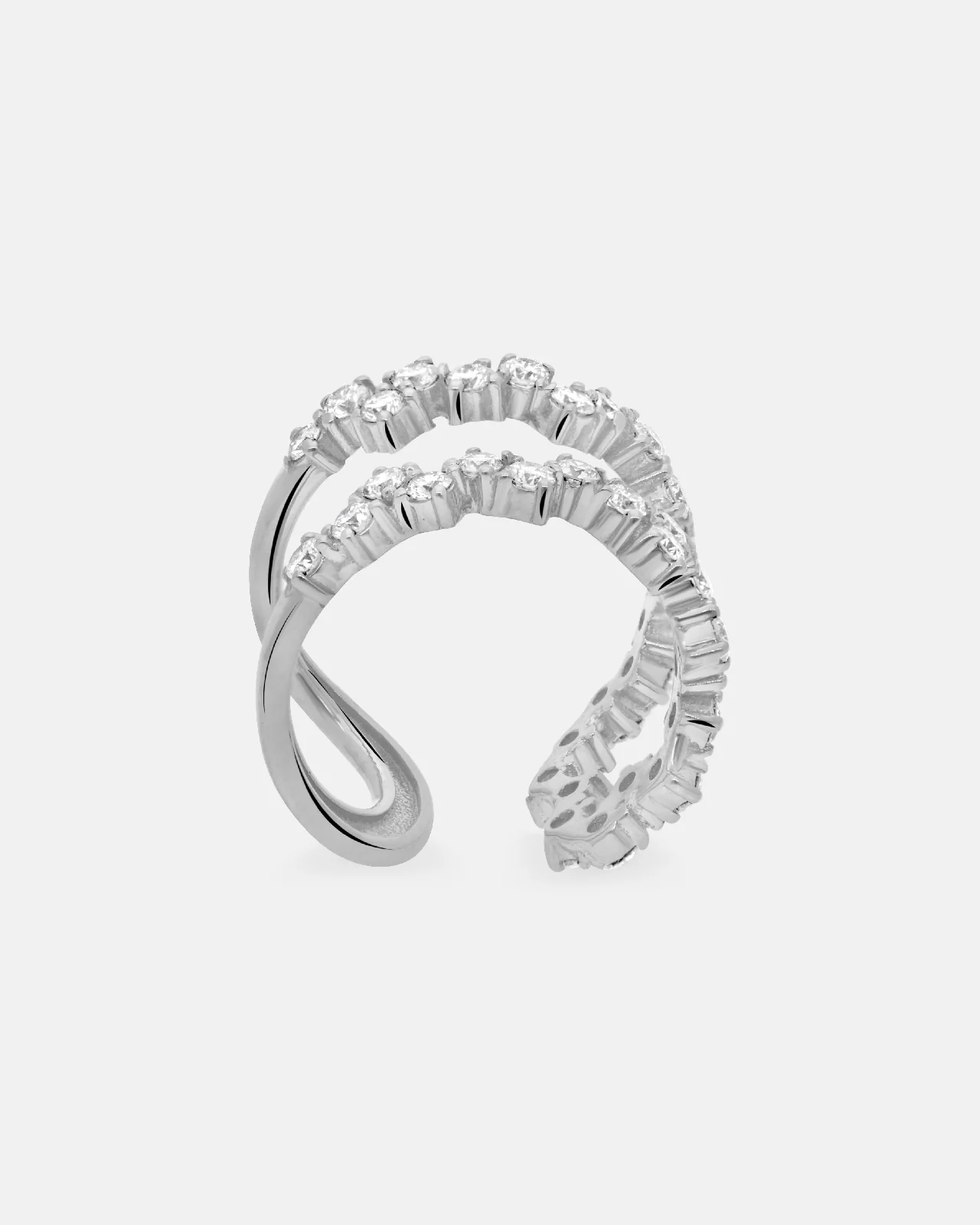 The GROOVE Ear Cuff reimagines the ear as a canvas for movement and light. Composed of two parallel rows of meticulously set diamonds, its design creates the illusion of sound suspended in form, a visual echo of rhythm and flow.