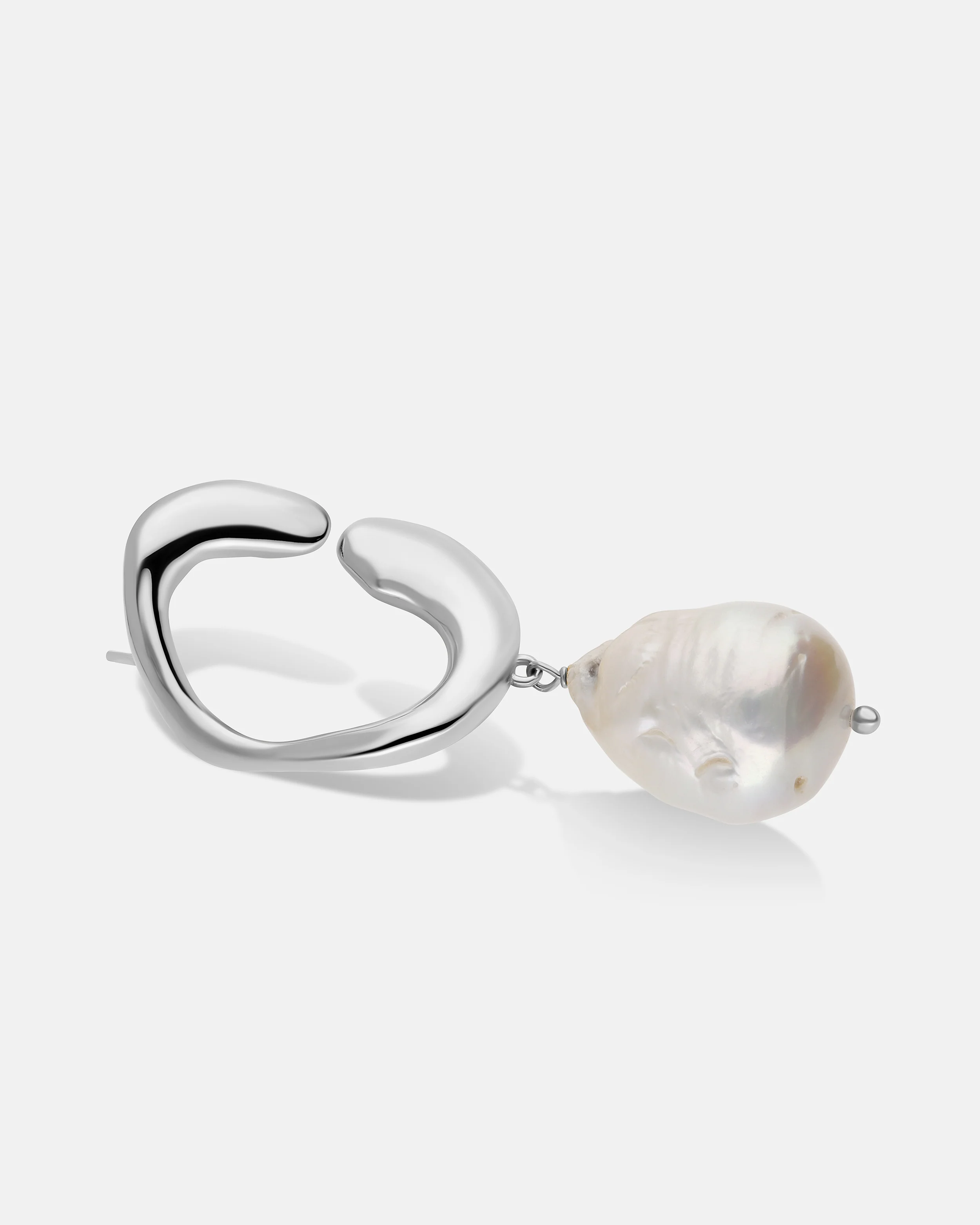 Designed with sterling silver, the Hope Talisman earring embodies modernism and ethereal allure. The sleek lines and minimalist design of the abstract horseshoe form perfectly complement the irregular baroque pearls, creating a harmonious blend of contemporary and classic elements. No two baroque pearls are alike, making them an exquisite representation of uniqueness. Their textured contours reflect the harmonious union of grace, wisdom, and beauty found in imperfection. They also bring a sense of serenity and tranquility, representing the endless cycle of luck and fortune, while expressing your singular vision and style.