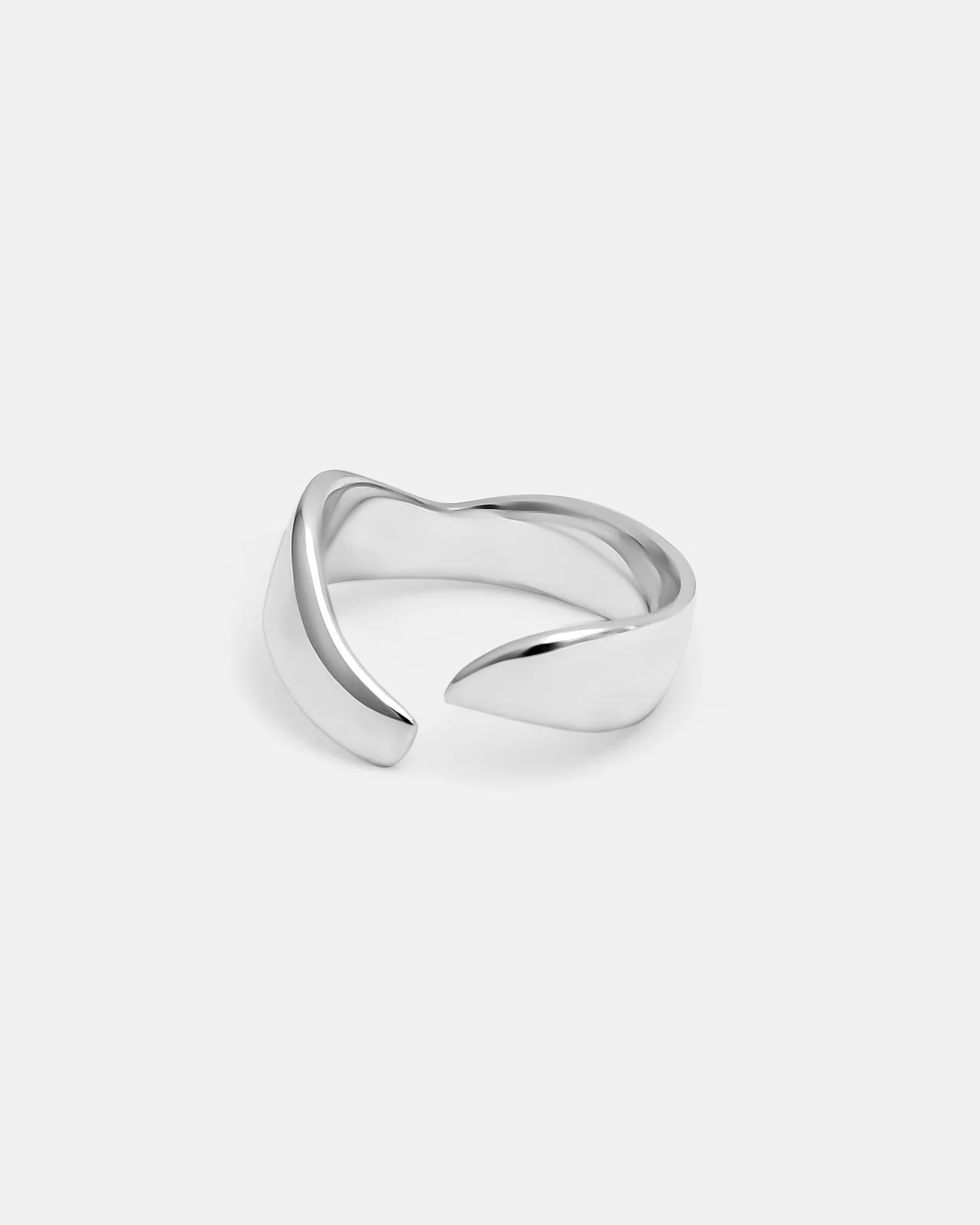 Celebrate modern design with understated sophistication. The sleek yet irregular cigar band ring hits the sweet spot between poise and simplicity; its unique shape wraps effortlessly around your finger for everyday wear and can be worn in different directions. The open ring is non-adjustable, please view our ring size chart to find your perfect ring size. Expertly crafted in 18k gold vermeil or sterling silver.