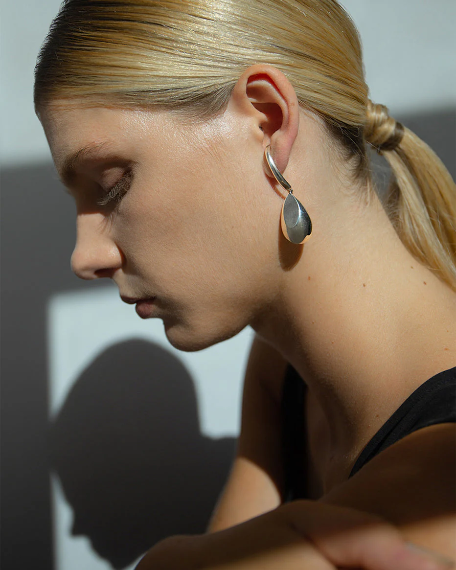 The signature Sense Earrings are a minimal and stunning embodiment of artistic elegance and natural inspiration. Drawing inspiration from modern abstract sculpture, the harmonious lines and the grace of the human body come alive in the smooth ovoid shape of each earring. Enhanced by a delicately carved edge and a convex stem that climbs over the lobe, the polish of the surface effortlessly captures and reflects light, creating a mesmerizing dance of brilliance. Transcend fleeting trends, Sense offers a timeless style that celebrates the simple power of beauty. The Sense exists in two alternative forms: